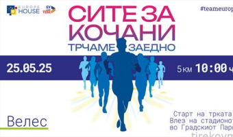 Недела на 25 мај, Велес, заедно со уште шест други градови од Македонија ќе биде дел од трката за Кочани. Неа ја организира Јуроп хаус Велес. Серијата трки „СИТЕ ЗА КОЧАНИ ‒ ТРЧАМЕ ЗАЕДНО!“ е дел од хуманитарната иницијатива по повод Денот на Европа 9 мај.