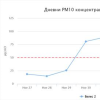 Два дена по ред воздухот во Велес е со концентрации на ПМ10 честички над 100 мг/м3. Според мерните инструменти на Министерството за животна средина на мерното место Велес2, лоцирано во дворот на Детската градинка во населба Тунел, вчера биле измерени средно дневни од 115 мг/м3 а во средата 118 мг/м3. Досега годинава од 337 дена во 59 било констатирано поголема вредност од дозволената 50 мг/м3. Дозволен број денови за Велес е 39.