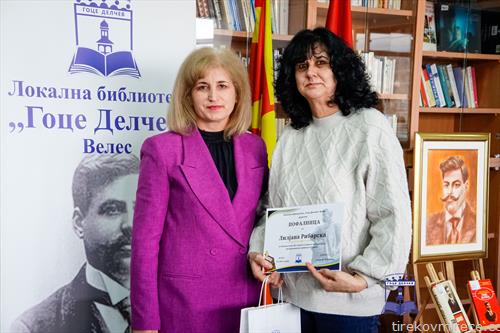 На 4 февруари, на патрониот ден на градската библиотека Гоце Делчев од Велес, беа врачени признанијата за најредовните читатели. Библиотеката, како и секоја година, ги награди читателите со најголем број изнајмени книги. Читател со најмногу прочитани книги од Одделот за возрасни, втора година по ред е Билјана Стојановска. Таа вели дека не гледа тв, серии, вести туку слободното време го минува со книгата во читање.