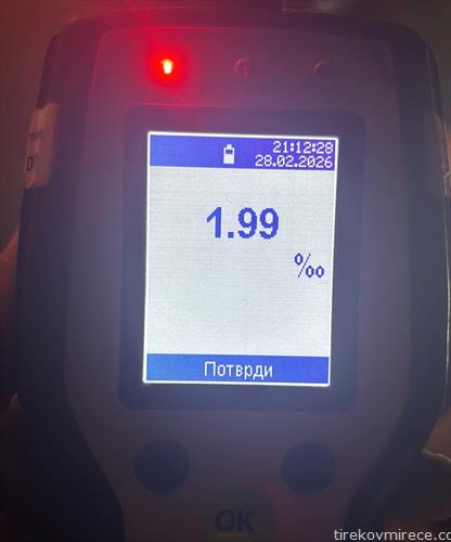 „На 28 февруари  во 21:10 часот на автопатот Куманово-Велес, кај клучка Аеродром во Скопје, полициски службеници од Мобилната единица за безбедност на сообраќајот на патиштата при Секторот за сообраќајни работи го лишија од слобода Т.А(54 год) од Велес. При контрола во патниот сообраќај, полициските службеници сопреле патничко моторно возило „ланчиа“ со велешки регистарски ознаки, кое го управувал Т.А. и по преземени мерки и извршен алкотест било констатирано дека возачот е под дејство на алкохол, односно дека управува моторно возило со 1,99 промили алкохол во крвта и дека имал активна забрана за управување возило“ – соопштија до МВР.