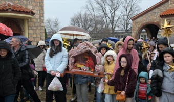 Претходно се отслужи Света Василиева литургија во црквата Св. Кирил и Методиј. По нејзиното завршување децата беа дарувани со бадникови пакетчиња.