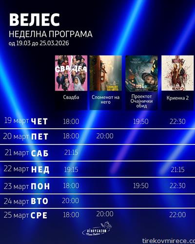 Пет филма се на репертоарот на Киноверзум Велес наредните седум дена, два се премиера.